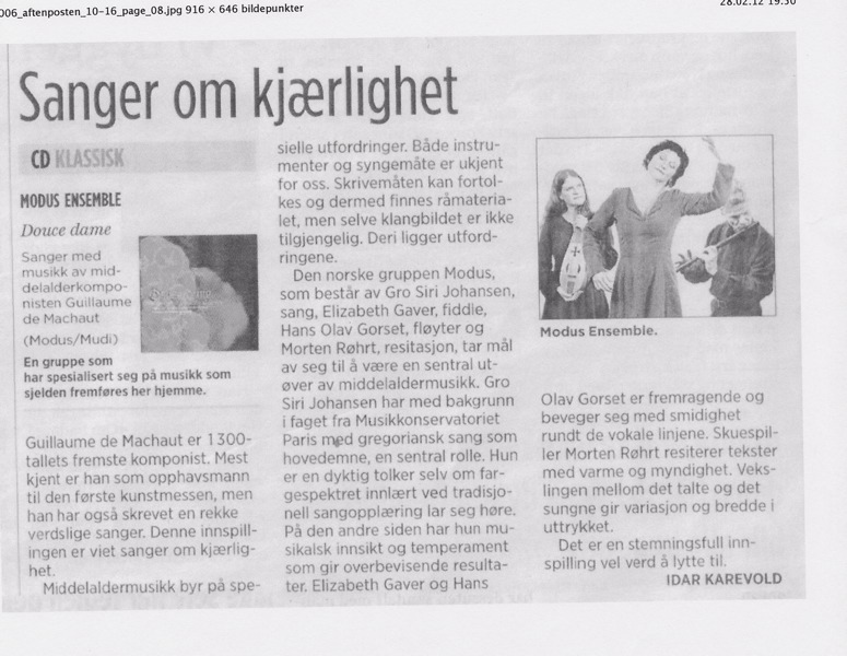 Etter å ha arbeidet lenge med musikken til Guillame de Machaut utga Modus Ensemble Douce dame som CD i 2006. Nesten 20 år senere utgis nå musikken digitalt.